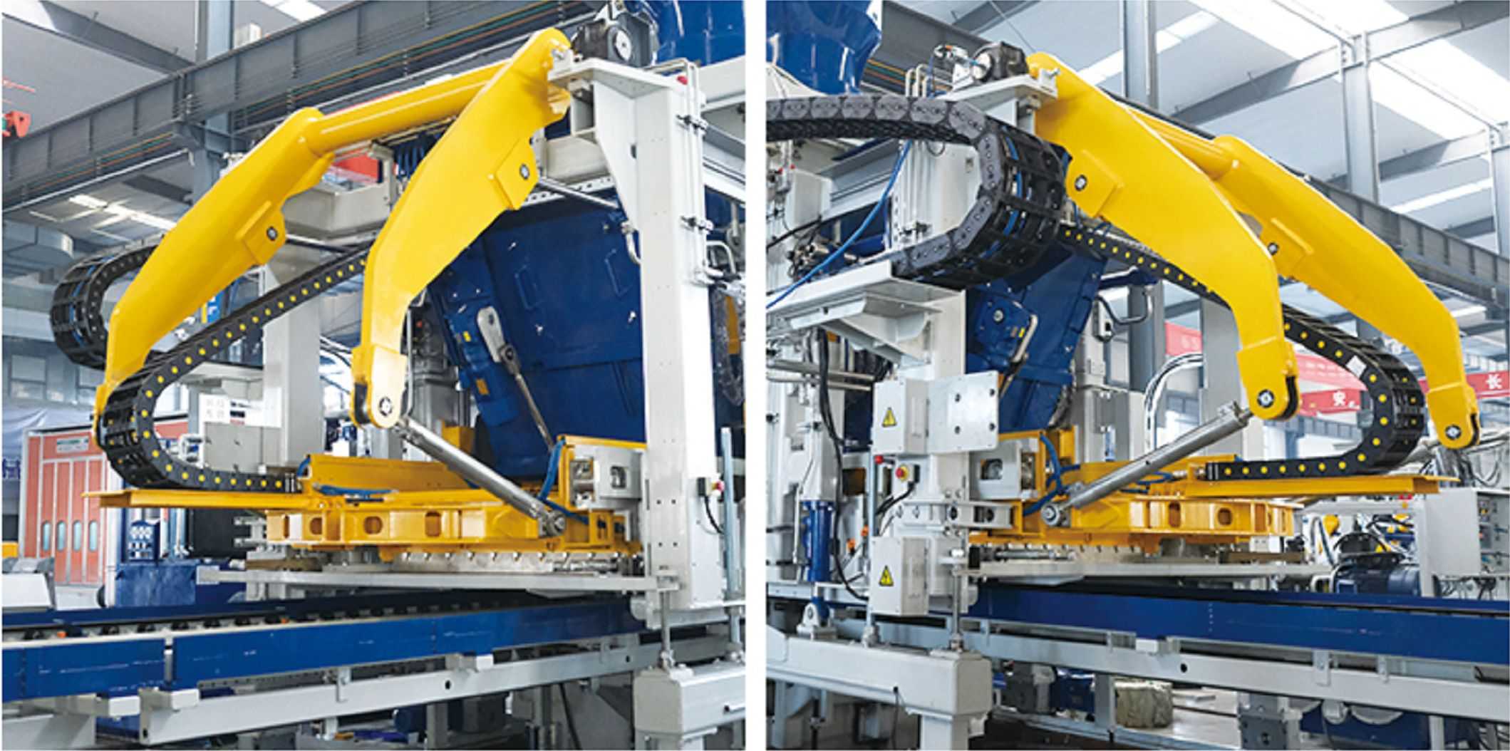 Design del telaio di alta qualità: Il telaio principale adotta una struttura del telaio saldata ad alta resistenza progettata con tecnologia brevettata, saldata con acciaio speciale. L'intero telaio è sottoposto a trattamento di vibrazione di invecchiamento per garantire l'alta qualità e l'elevata stabilità del telaio. Utilizza colonne di grande diametro come supporto e guida, con elevata precisione. La rimozione adotta la sincronizzazione meccanica, la sformatura precisa e l'elevata consistenza dei prodotti finiti.